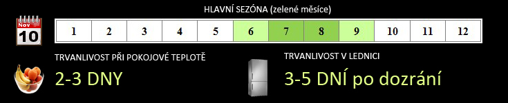 Praktické info: Jestliže jsou nektarinky zralé, dá se pecka snadno odstranit. Pokud je barva slupky jasná a vypadá svěže, pak lze očekávat, že nektarinka bude sladká. Pokud je nektarinka tvrdá, ale současně má správnou temně rudou barvu, alespoň částečně, pak ještě může dozrát doma při pokojové teplotě.